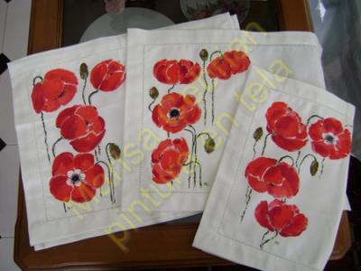 Esta es una muestra de menaje del hogar que he pintado (ropa de cama y mantelerías, individuales y grandes).